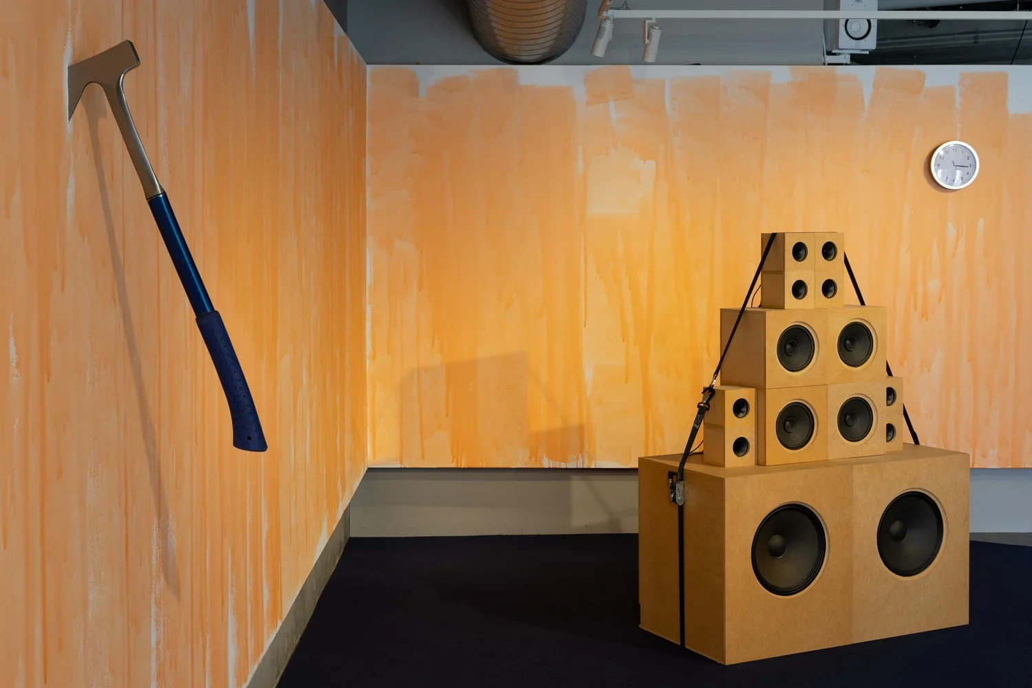 Through video work and layered sculptural forms, the exhibition evokes the five stages of grief - denial, anger, bargaining, depression, and acceptance - as nonlinear, looping states.